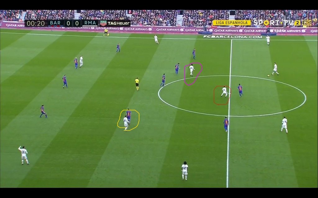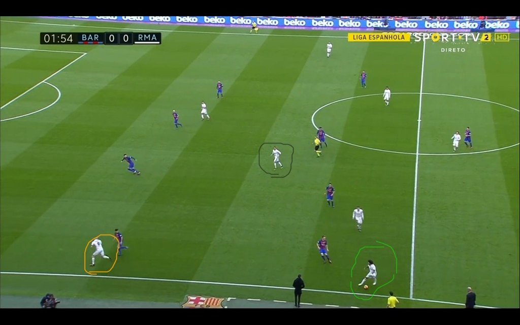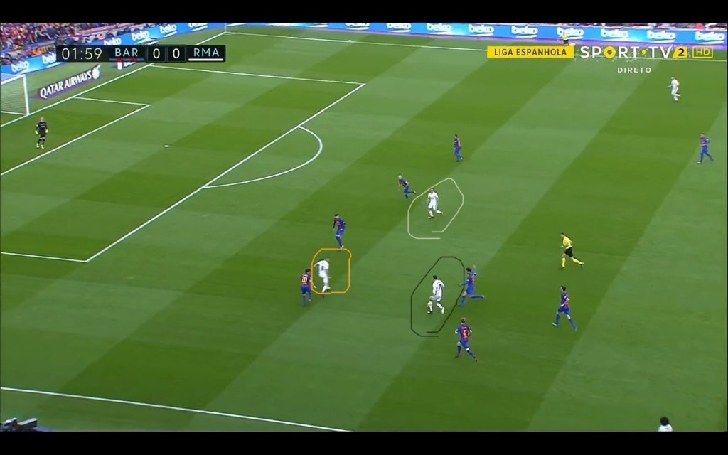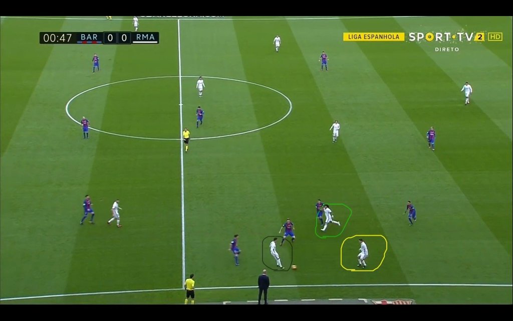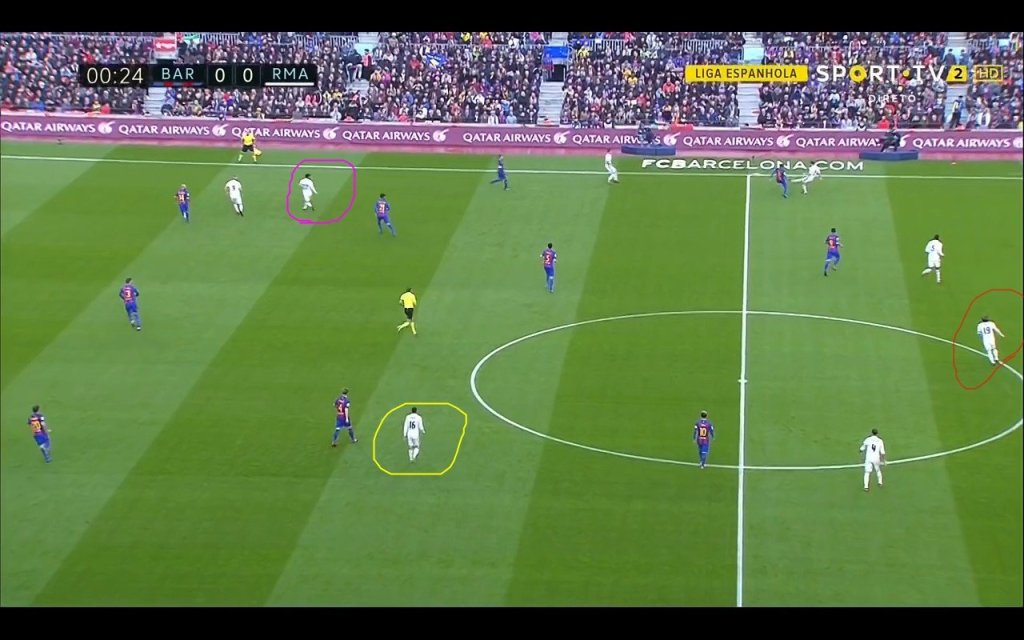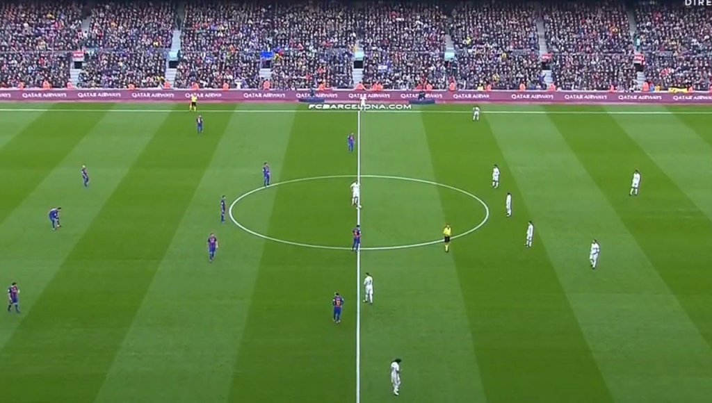 In this episode we’ll look into the patterns of play that are associated with a MIXED and MIXED set up. If this is your first blog post I suggest that you read episode 2 of this season (titled ‘Team Instructions’) to get a better understanding of what these two types of styles are. To illustrate how your team will look while playing a MIXED and MIXED (in possession), we will use photos from a Real Madrid team playing against Barcelona from an El Clasico during the 2015-16 season.