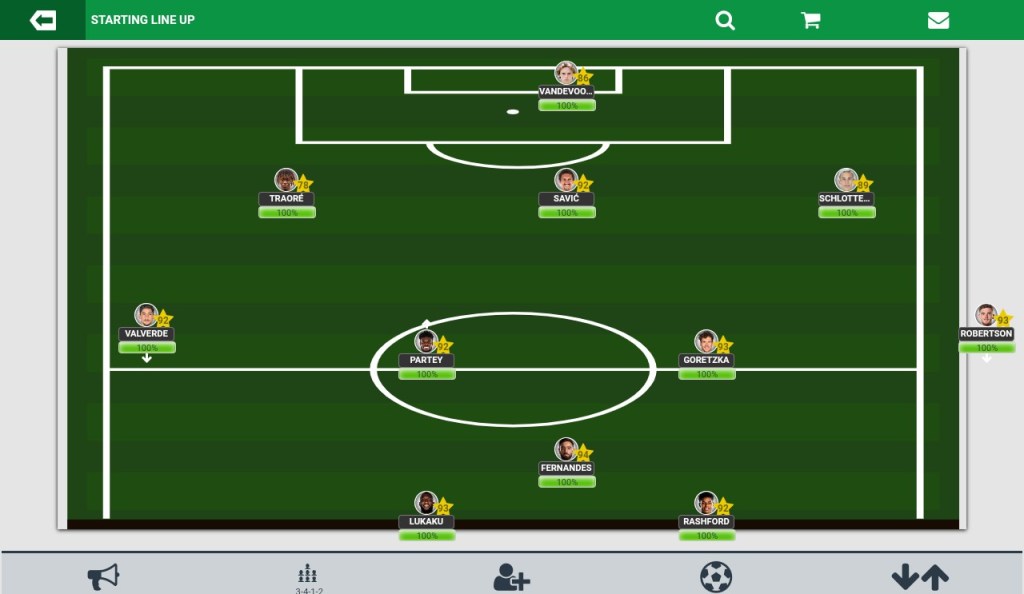 Consisting of 3 Defenders, 2 Central Midfielders, 2 Wide Men , 1 Attacking Midfielder and 2 Forwards, the 3-4-1-2 is as close to a 3-5-2 that you could ever get. This formation allows its user to play an extra attack minded player, scraficing a would be Central Midfielder for a player who can potentially make a difference at the business end of the field. Similarly to the 3-4-2-1, the player/s that operates behind the Forward/s can be any type of player which ofcourse is completely dependent on your personnel and tactical approach. What most teams tend to do these days is rotate between using the 3-4-1-2 and 3-4-2-1 throughout the course of a match and you too can also do this but it is imperative that you understand how to use the arrows in your favor to do so.