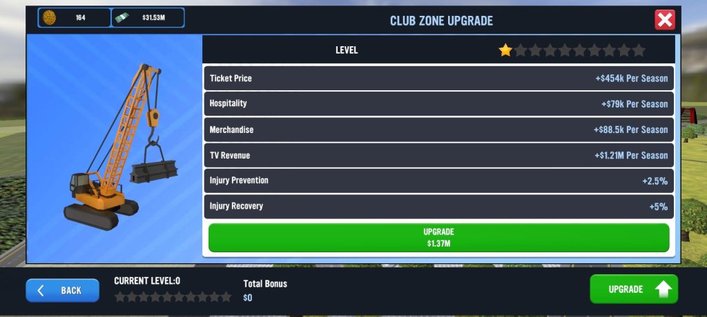 Another great thing about the Club Zone is that it costs peanuts to upgrade each level. Back when I played SM21, I would upgrade the Club Zone all the way to level 10 within my first 3 seasons at a club. I refuse to do that now since it isn’t really that realistic. I mean, think about it, the only way that these areas of a club would be imporved is if that club has been performing beyond belief on the pitch…. As you should know by now, I’m really big on keeping everything about this gane as realistic as possible thus increasing the challenge 💪