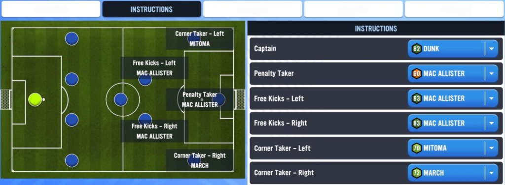 Player instructions are pretty self explanatory and very similar to the player instructions within SM Worlds. I’ve already went through an entire list of all the best set piece takers within this game in Season 4: Episode 34 that you can give a look at by clicking the following link: https://thesoccermanageronline.sport.blog/2023/03/14/season-4-player-roles-episode-34-a-set-piece-masterclass/