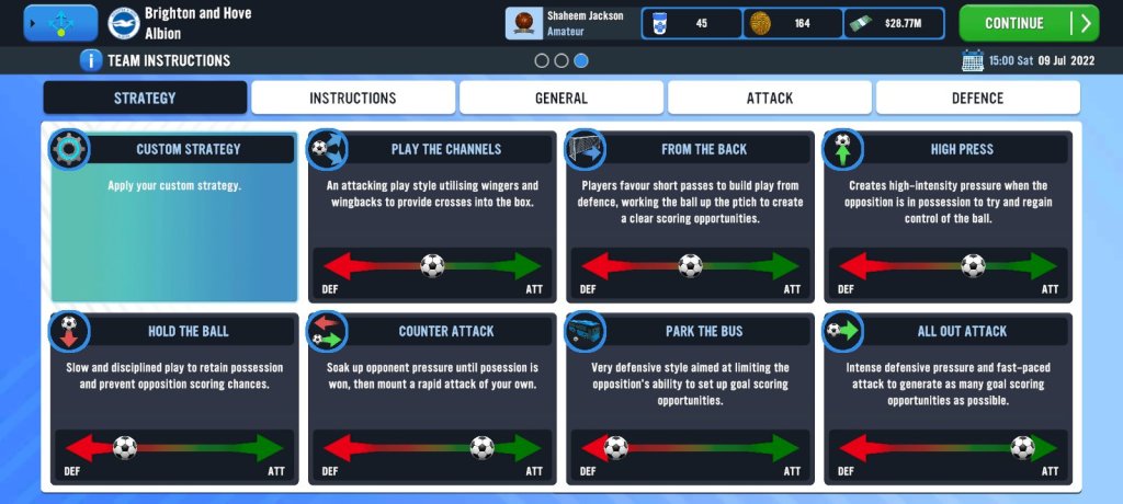 Here is where you get to display your tactical prowess by simply sticking to your set up without actually looking for any assistnace from the other strategies that we will be getting into shortly. It is important that you choose this option when you are first managing a team or have decided to completely change your tactics up in order to try a new system if things are going badly or if you’re simply getting bored