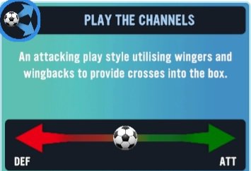 Each strategy has it’s own mini description that we will be skipping past for now. ‘Playing the channel’ is a great way to get the ball outwide as much as a team can, utilizing Explosive Wingers, Wingbacks and Wide Forwards who are extremley quick and skillfull in order to cause chaos in the opposition’s defence. The best way to implement this will be to set up your instructions in a manner that gets the most width out of the X1.