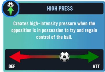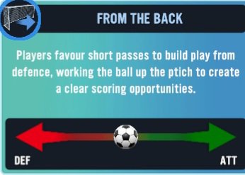 Before I go, I would just like to note that each strategy has a meter next to it showcasing the level of attacking or defensive approach that every strategy has to offer. Be aware that these cannot be changed and must be taken into consideration before sending your lads out onto the pitch or using it in the midst of a match.