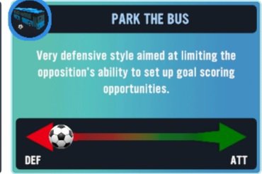 Now, do I really need to explain this one? 🤣 Often regarded as the ‘Jose Mourinho’ tactic, this is a strategy used in order to completely set up shop within your defensive third. It is an ultra defensive tactic used to prevent the opposition from having any form of space within the most dangerous areas around your 18 yard box. This is another strategy that should only be used in-game and preferably at the latter stages of a match. You should also consider going V.Defensive with your mentality.