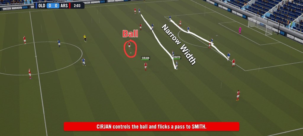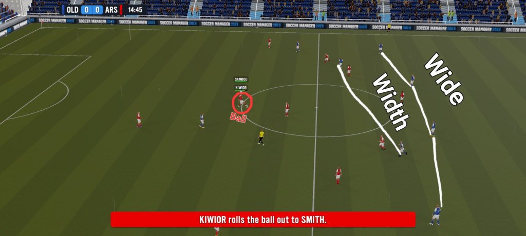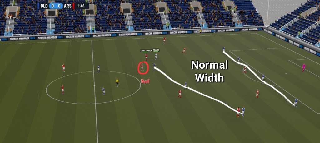 Width is pretty self explanatory, enit? It basically indicates how stretched or congested the shape of your formation will be during majority of a match. In SM23, there are 3 different options available in terms of the different width you decide to implement during the course of a match.Additionally, the only way for us to be able to see the difference between the different types of available widths will be when our team does not have possession of the ball.