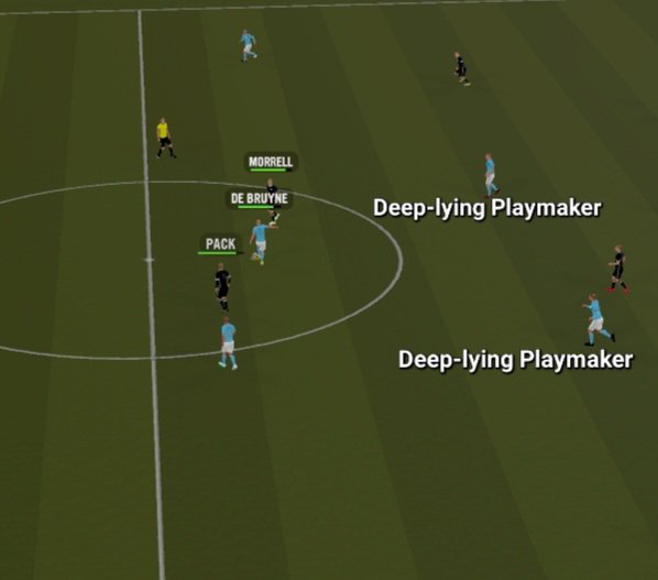 Just like the 3-2-5, our keeper must be a Modern Keeper since he will be required to get on the ball to be an extra man within the build up play from the back. The 3 Central Defenders don’t necessarily have to play in specific roles, but it is very imperative that they all have decent passing attributes since this formation only works well with an emphasis on short passing and possession based football. Manchester City already have a lot ofquality but the same is not true for most clubs so proceed with caution before using this quartet set up: