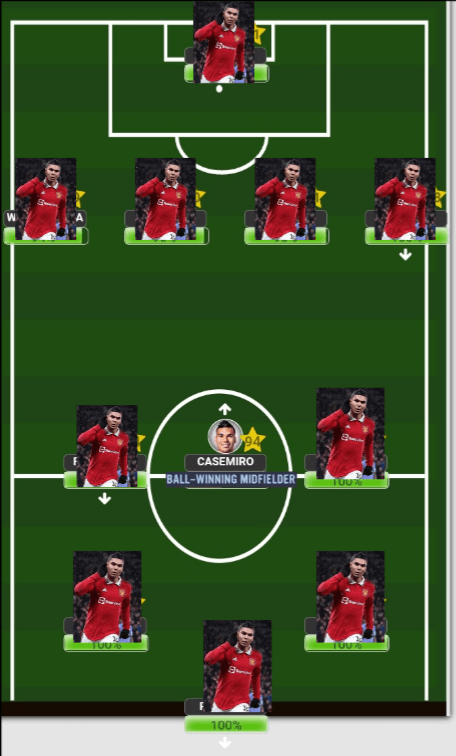 Casemiro is a one role man who only wants to kill his opposition with tackles, intercept any dangerous balls, and showcase his leadership qualities within the engine room. Therefore, no matter what formation you play, you should only give him the role as your sole ‘Ball Winning MidfielderEven whilst starting him within a double pivot, he still should only be granted that coveted BWM role…..Whether Back 3, 5, or 6, the role still remains the same .In addition, you should also aim to play him as the sole BWM since he absolutely thrives as a lone warrior surrounded by better technical players in front of him in a similar fashion to how some Strikers operate better when playing up front alone like a Drogba, Van Nestlerooy , or Diego Costa (is it such a coincidence that they also possess incredible bouts of Strength? 🙄)