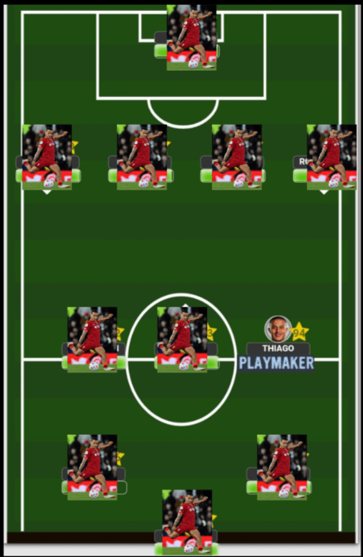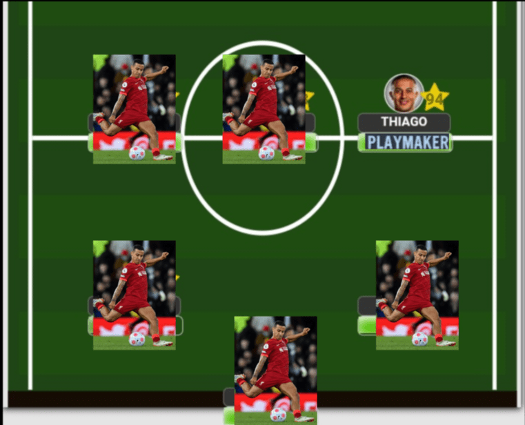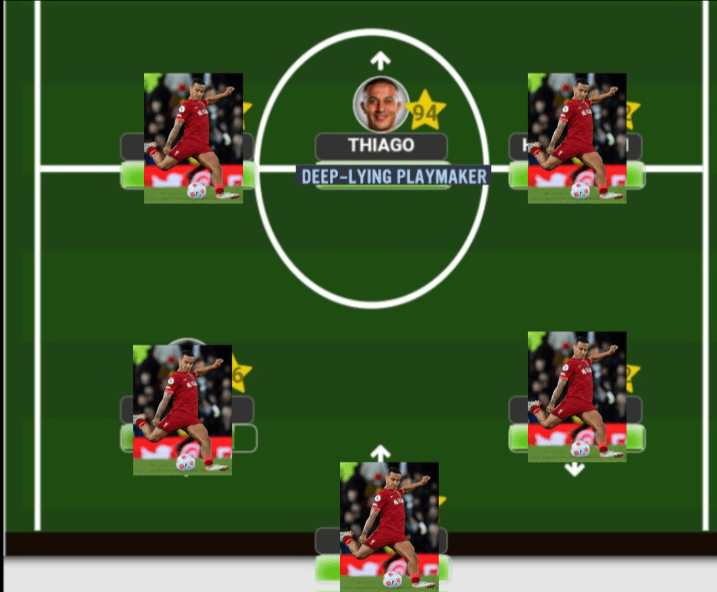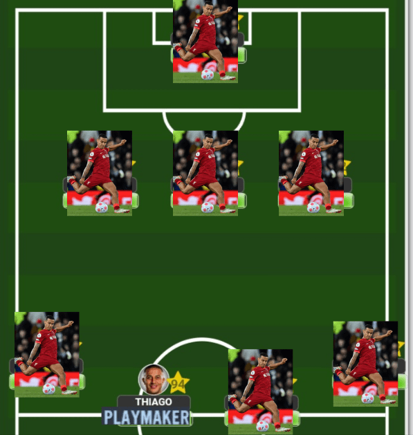 As I mentioned earlier, Thiago’s best usage will be to play him within a midfield 3 which will allow him a bit more freedom to conjure up the magic that he has within his locker. Of course, the role remains the same…