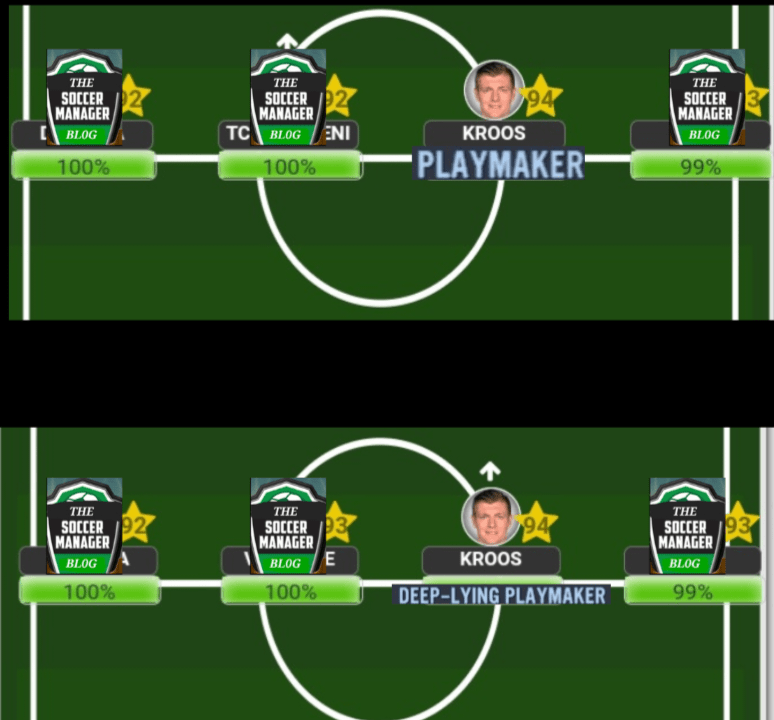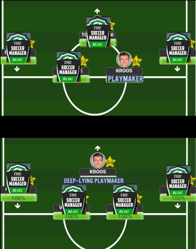 Play close attention to the following section, Soccermamagerite, cause Kroos is a player who can be used in several different ways but will basically perform the exact way no matter where we decide to play him. Firstly, His optimal role (in my opinion) is that of a DLP who is given the license to be the sole ball player within the midfield areaHis secondary role will be as a ‘Playmaker’ whenever he is given that ‘No.8’ role alongside some other midfield operators. The trick is that Toni will practically play the exact same way whether he is playing as an ‘8’ or ‘6’ which is why we must cover up for his deficiencies as trying to play him anyway else than his usual game would lead to frustration for both parties (him and us, as his Manager) In a 3 at the back formation, Kroosy will operate the exact same way as he would in more popular formations, with the caveat being that if you play him as your deepest midfielder then it’s a ‘DLP’ role that he will be automatically given, while playing him any where else in the M(C) positions will identify that he is being tasked to play as your ‘Playmaker