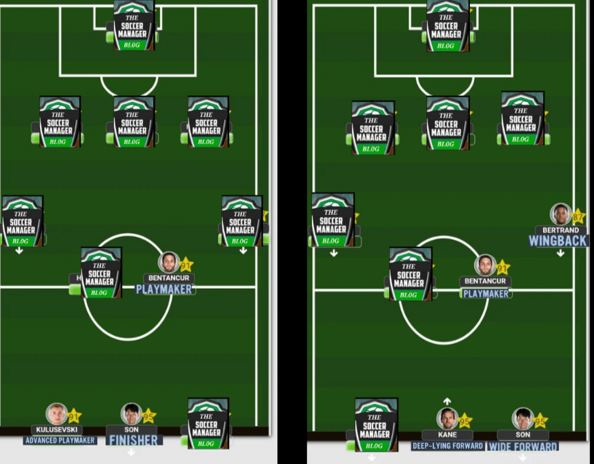 Son’s best position is and will always be off the left, and it is VERY important to note that he should only be rotated as an AM,F(L) or F(C), but NEVER as an AM,F(R) since he is one of those wide players whose strengths are maximized when played on one side of the pitch similar to a Vinucius, Rashford, or a Salah