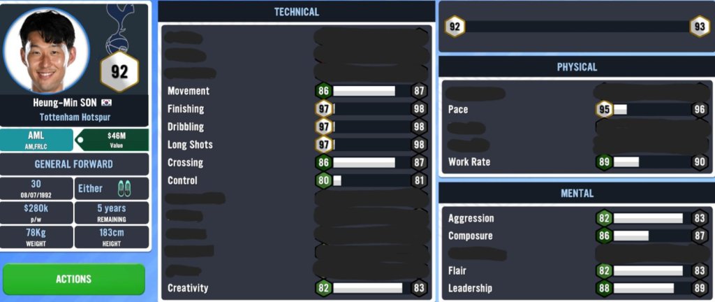As a ‘Wide Forward’, Son requires the same type of teamamtes alongside him similar to what Salah requires. The only difference is that Sonny is more comfortable starting and staying wider than usual when paired with a ‘Technical Target Man’ to serve him chances and play a supporting role, while Salah wants to be the main man, hence why he won’t work well playing off the right with anyone one other than a ‘DLF’One trend you should be realizing is the fact that if you want to play someone as a ‘Winger’ who dosen’t play their naturally, you will need to have a ‘FullBack’ behind of him who will be a support to your ‘Winger’ and never aim to overlap him. Another important thing to note is that whenever you play with a ‘Winger’, he will need either a ‘Target Man’ or a ‘Finisher’ to get unto those crosses from out wideIf you wanted to use Sonny as a ‘Wide Forward’ within a formation like the 4-2-3-1B, then you’ll only need to play a ‘Wingback’ who’ll allow Sonny to cut inside and occupy spaces closer to the opposition’s goalOnwards to using him as a Finsher. Son is one of the deadliest goal scorers around the box that isn’t an actual F(C), and his off the ball movement will make him a huge asset to any team that plays him there. The only downside to this is that he is not the most physically gifted player in terms of strength and aerial ability. Therefore, in order to get the most out of him it will require that you have players around him that are all about creativity. And the best teammates for this will be a ‘Playmaker’ who’s conducting the game from the middle third of the pitch, and an ‘Advanced Playmaker’ who’s looking to execute game changing assists for the likes of Sonny from the attacking third. In addition to this, to ensure that Sonny is playing as your ‘Finisher’, you will have to both point is arrow to ‘attacking’ and use him as your Target Man When choosing to play him in a front 2, there are a few options: The first one is to use him as your ‘General Forward’ which will require him to be paired with a ‘Target Man’. While the second option would be to use him as your ‘Finisher’ and pair him with a ‘Deep-lying Forward’ or a ‘General Forward’ who has good playmaking abilities like a Latauro MartinezI hope that you are now recognizing the patterns that is required to not only get the best out of Heung Min Son, but all of your World Class Players since they can either be a blessing and provide an abundance of top performances or a curse and be an extreme giver of migrains…In our final image, I want to share with you what is needed to play Sonny as a ‘General Forward’ and as your main F(C). First of all, despite what SM23 says, Son is not a ‘General Forward’. He is actually a ‘Wide Forward’. Secondly, a ‘Playmaker’ of some sort must always be prevalent once Son is in your team. Thirdly, he is not much of a creative player, so whenever you play him as your ‘GF’ (and as your main Striker), you will need to have players who have good movement around him as they will be swapping their postions often in order to confuse the opposition defenders by making it hard to ping them down