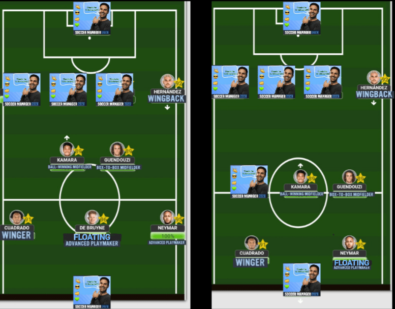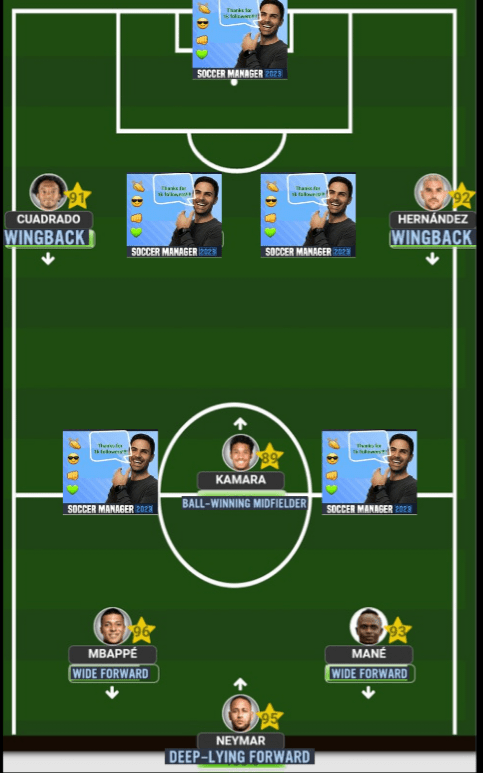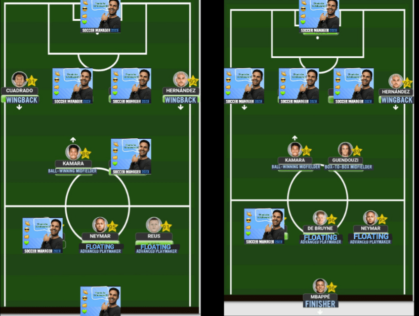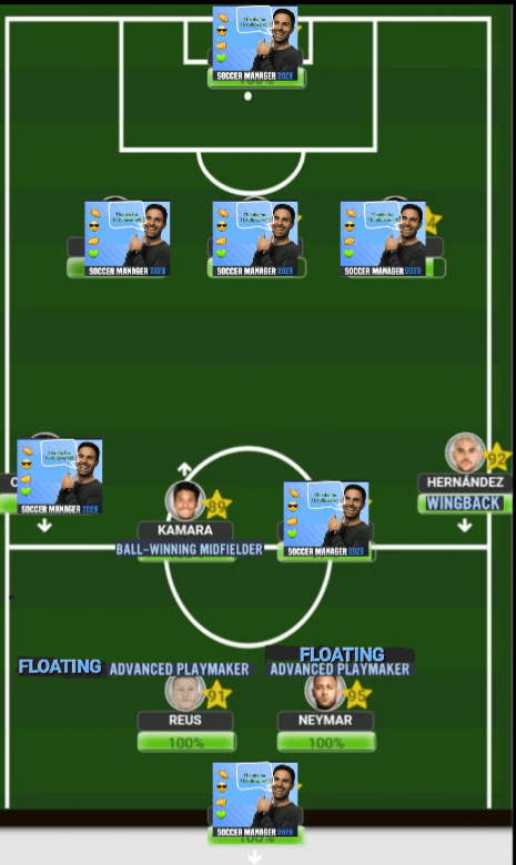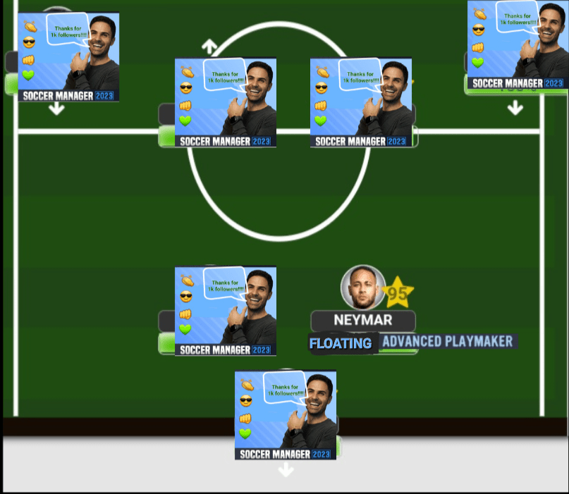 Every player has his strengths and weaknesses, and while Ney will continually display world class performances game after game, he is one of those players that require A LOT of love and care (which is my way of saying that he must be the main man or you simply won’t get anything from him). So, choosing Neymar in your team means you will need the right type of players around him. Firstly, the number 1 teammate needed will be a ‘Ball Winning Midfielder’ since Ney is not an active presser and prefers to conserve his energy for attacking bouts. So, no matter where Neymar plays, a ‘BWM’ must be present. Secondly, Neymar is a player who has incredible football intelligence and needs to have someone of the same style of him that can read his plays (which is why he plays his best football with Messi, Suarez and Mbappe). So, a similar style ‘FAP’ will be needed especially when using narrow style formations like the 4-2-3-1A or the 4-3-2-1, for exampleWhen playing outwide, the formation determines who you should consider using alongside Ney. The ‘BWM’ remains mandatory, while a ‘Wingback’ will be needed to provide the width since Neymar will not be staying out wide at all. Additionally, when you have a flair type player who doesn’t like to defend playing out wide, you will need a ‘Box to box’ Midfielder to cover for their defensive frailties since B2B’s are one of fittest players in soccer and can cover for man like Ney since he’s too good on the ball to give defensive responsibilities Neymar is a player who does not like to be given any form of instructions, which is why he’s always had this ‘bad boy’ persona given to him based on his playing style. But, when the right formation and teammates come together, you can absolutely implement his world class passing and creativity which should ONLY be done when using the 4-2-3-1B. In this formation, Neymar will be your main playmaker, dictating the tempo of the game and looking to make those decisive passes into other attacking teammates. The entire team should be molded to suit him, therefore you will need a ‘Winger’ outside to keep the width, stretching the opposition to open up more space for Neymar, at least one ‘Wingback’ overlapping consistently, and your mandatory ‘Ball Winning Midfielder’Although I mentioned that Neymar rarely plays as a ‘Deep-lying Forward ‘these days, that dosen’t mean he cannot play the role anymore. In fact, playing him here could potentially unlock some aspects of his game even more. But, you need the right players around him, and those players will need to be ‘Wide Forawards’ who are constantly looking to make runs to get in on Neymar’s passing.Ofcourse, whenever you ate using a ‘DLF’ as your F(C) then you should not be looking to use him (with a slight exception that we’ll be discussing in a future episode)When it comes to comparing Neymar to other players, the only one who comes close stylistically is Lionel Messi. But the one difference between the 2 is the fact that Neymar is more mobile player which means that he is comfortable making off the ball runs for himself and for teammates. Hence the reason why he can play as your ‘Support Striker’. He will need a ‘Target Man’ alongside him, however…In our final image, we have the formation that will get Neymar playing so well that you’ll think you’ve just been granted a cheat code. Although you still need to have the right teammates around him, there’s something about the 3-4-2-1 that gets him into Balon d’or (or, soccermanager’dor) levels of performances game after game.