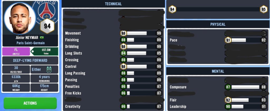 It’s only after taking a deep look into his attributes did I realize that Ney is at a ‘god tier’ when it comes to technical ability. Don’t take non of these for granted as it shows that this is one of the only players in World Football who can single handedly win a match on his own even if the support cast around him isn’t the best. All in all, we should be satisfied with his attributes.
