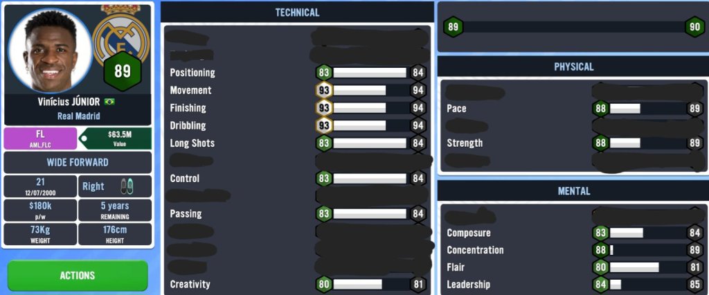 As a ‘Wide Forward’ Vinícius has some of the best Attributes within the entire game which makes him a seriously dangerous threat. So, if you have him within your team, don’t be surprised that he is putting up some amazing goals and assist numbers