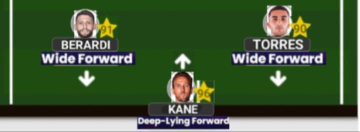 When it comes to this starting XI (wether you choose a low, mid or high block), there will be a level of efficiency which allows the team to transition on the attack quite effectively… In Kane, Berardi and Ferran, we have 3 players that are hardworking off the ball and will do everything they can to make it difficult for the opposition to bypass them. Behind of our front 3 are another set of hardworking players, with Schlager and Jude providing the legs that are necessary to apply that pressure, while Rodri will be the director telling his teammates where to be in addition to outing fires since that’s his primary job in the team when they don’t have the ball. The back 4 will base their decision making on what occurs in front of them, but just know that the steel provided by both Carlos and Botman, while the Italian street smartness of Calabria and the expereince of Alba mean that this defence won’t be easily broken down. We also have an elite shotstopper in Alisson who will thrive in particular if you choose to press with a high block…