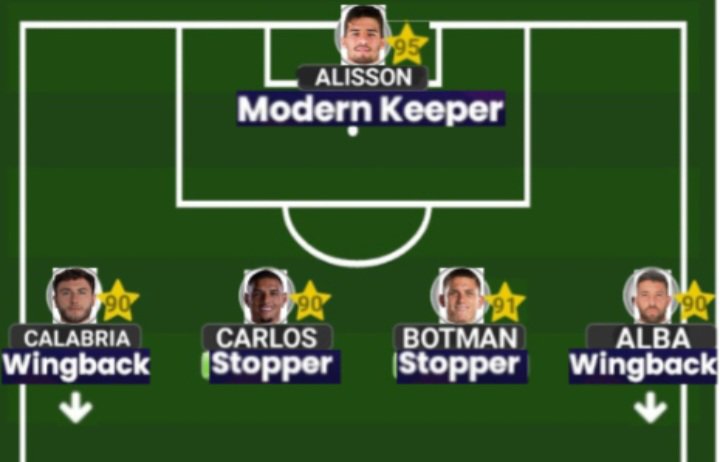 We continue on the flanks where we have two traditional ‘Wingbacks’ whose primary responsibilities will be to provide width, and in the Italian Davide Calabria and the Spanish legend Jordi Alba, both will occupy the wings in an attempt to stretch the opposition as much as possible while allowing the lads further up the pitch to do their thing in more central positions. In Calabria, we have a ‘Wingback’ that doesn’t do anything too spectacular on the ball but is postionally sound, while we have Alba who is well regarded as the best DM(L) of his generation and doesn’t really need that much of an introduction. In between both ‘Wingbacks’, we have the D(C) pairing that will provide an extreme level of steel and grit in the Dutchman Sven Botman, and the Brazilian Diego Carlos. Both are traditional ‘Stoppers’ who will work extremely hard to make their opposition find it difficult to bypass their defensive wall.