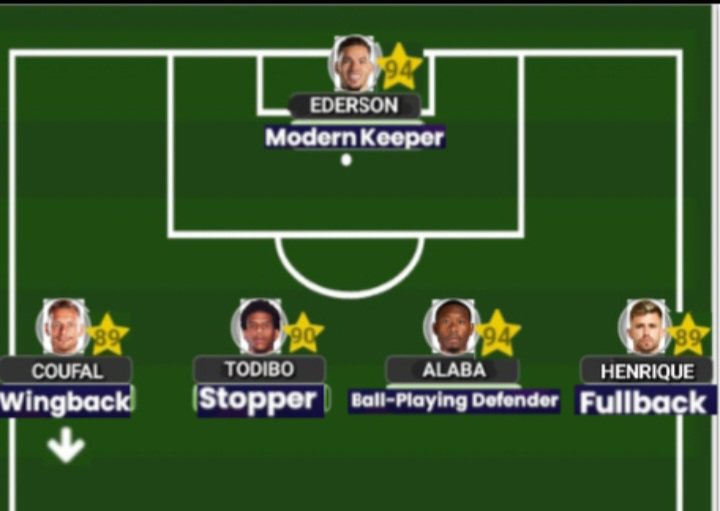 In front of Ederson we have the D(C) pair setup that you’ve probably been used to seeing during the course of this season in theworld class ‘Ball Playing Defender’ and Austrian skipper David Alaba, and the up and coming French ‘Stopper’ Jean-Clair Todibo (the amount of Center Backs France have at their disposal is ridiculous…,) Both D(C)‘s will be providing a great mixture of ball playing capabilites from one and the destruction of the opposition’s play from the other. With the structure of the midfield 3, there will be more of an emphasis on Ederson and Alaba to be the ones who are responsible for ball progression within the early stages of the build up. On the flanks, we have the Czech Republic international Vladimir Coufal, while the Brazilian Caio Enrique is an under the radar player who currently plays in France and will be responsible for maintaining his position as a supporting ‘Fullback’ who will also convert into a left sidedD(C) if it is needed (particularly against a press that consists of a lot of attack minded players)