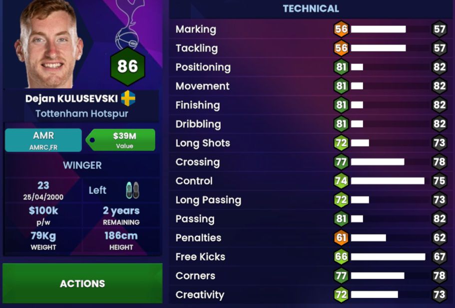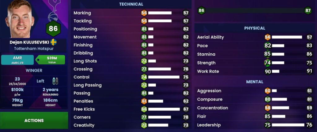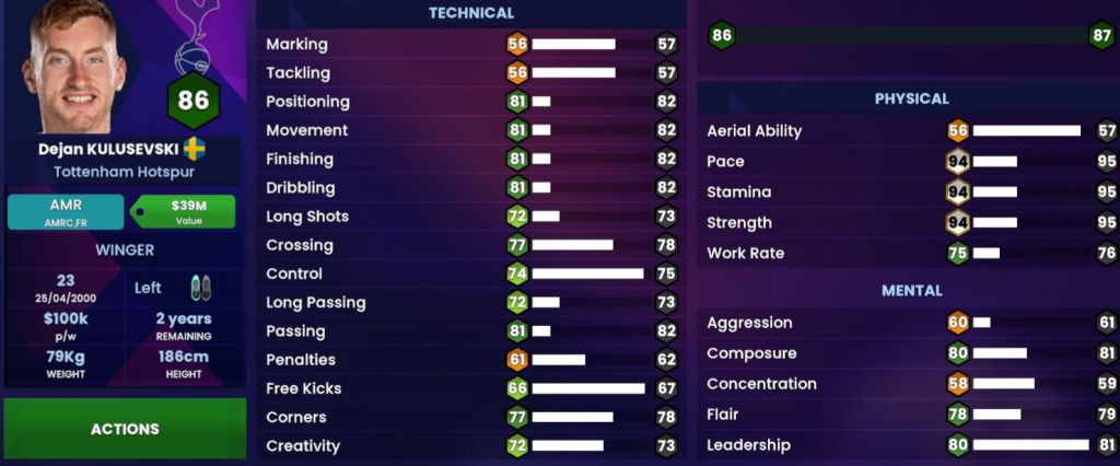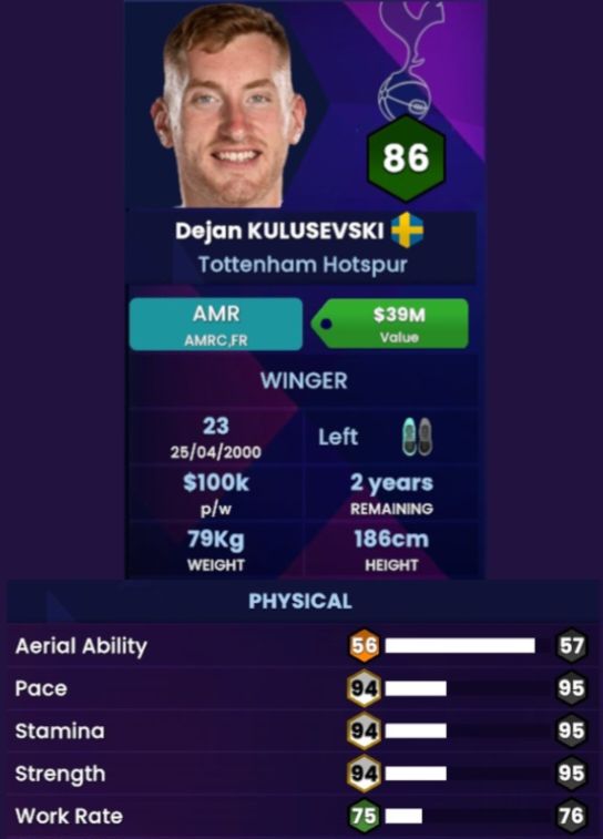 As much as I believe most Spurs players are exceptionally fit, there has been a bit of complacency in terms of Dejan’s current physical attributes. Dejan is not a “break neck” type of player who seeks to burst past his opposition with Pace, so him being on ’94’ is actually way too sincere ; He is indeed a fit player, but that Stamina is too high, and I don’t know what the 🤬 is going on for his Strength since he isn’t built like Hulk (the player, not the superhero) or anything like that, but his Work Rate definitely deserves to be increased…