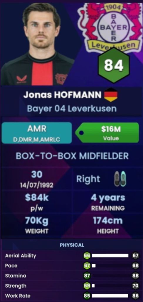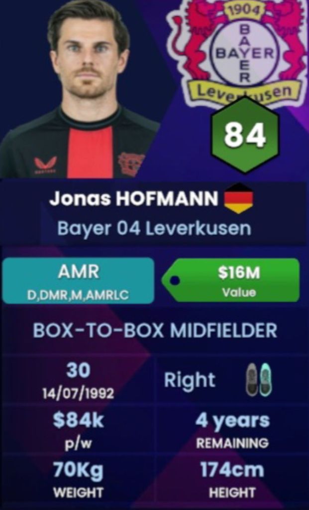 Arguably considered the most versatile player at the highest level, Jonas Hofmann is a Manager’s dream. Not only is he one of the leaders of the “versatility gang”, but he never complains, does the job that’s been asked of him, and guarantees 7 out of 10 performances game after game (6 out of 10, in the Soccermanagerverse).
