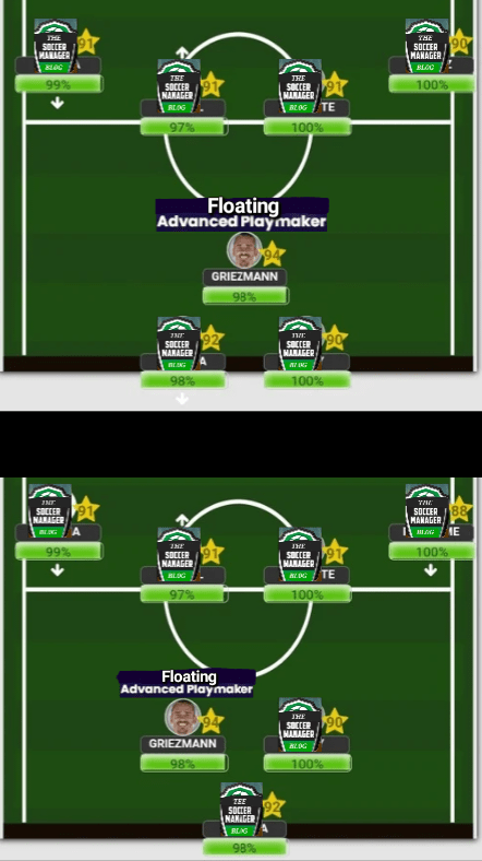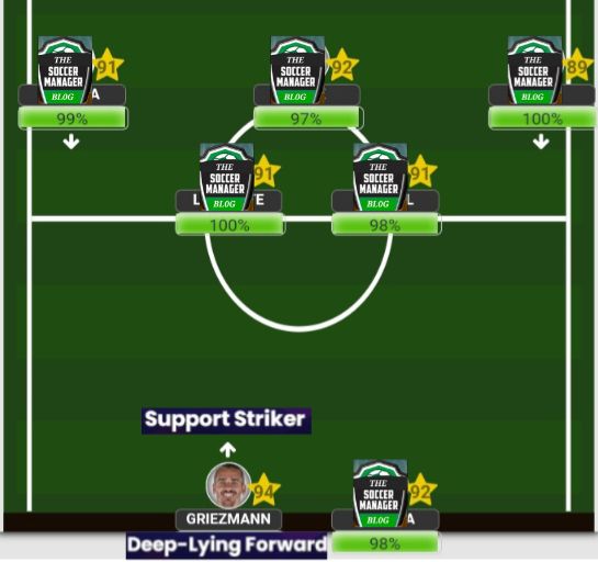 There are a few SMW Superstars who shine even when slightly out of position… These 2 formations are just an example of what you can do if there ever was a scenario where you need to play Antoine within the midfield. It’s important to note that he should ONLY be in a midfield 3 since he needs legs around him, should never be used as a ‘Playmaker’ since that’s not his game, and should have his arrow pointed towards ‘Attacking’ in order for him to still look to get in and around the 18 yard box to do his damage. A lot of people were proclaiming that Griezmann was playing within a midfield 3 alongside TchouamΓ¨ni and Rabiot at the 2022 World Cup, and we tend to agree, but he hasn’t been granted the M(C) position for some reason… π€·ββοΈ